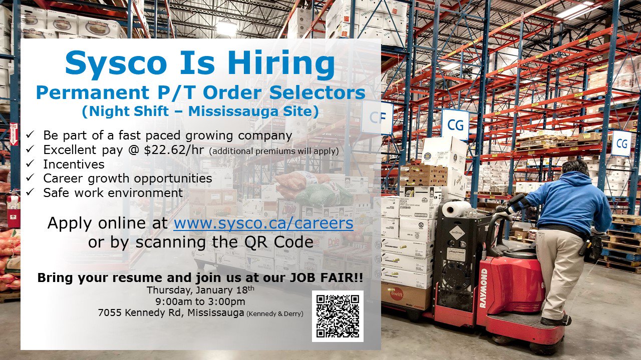 Sysco Canada On Twitter It S Time For Another Job Fair At Sysco In Mississauga Thursday January 18th 9am To 3pm We Are Hiring For Our Warehouse Team Be Part Of A Great